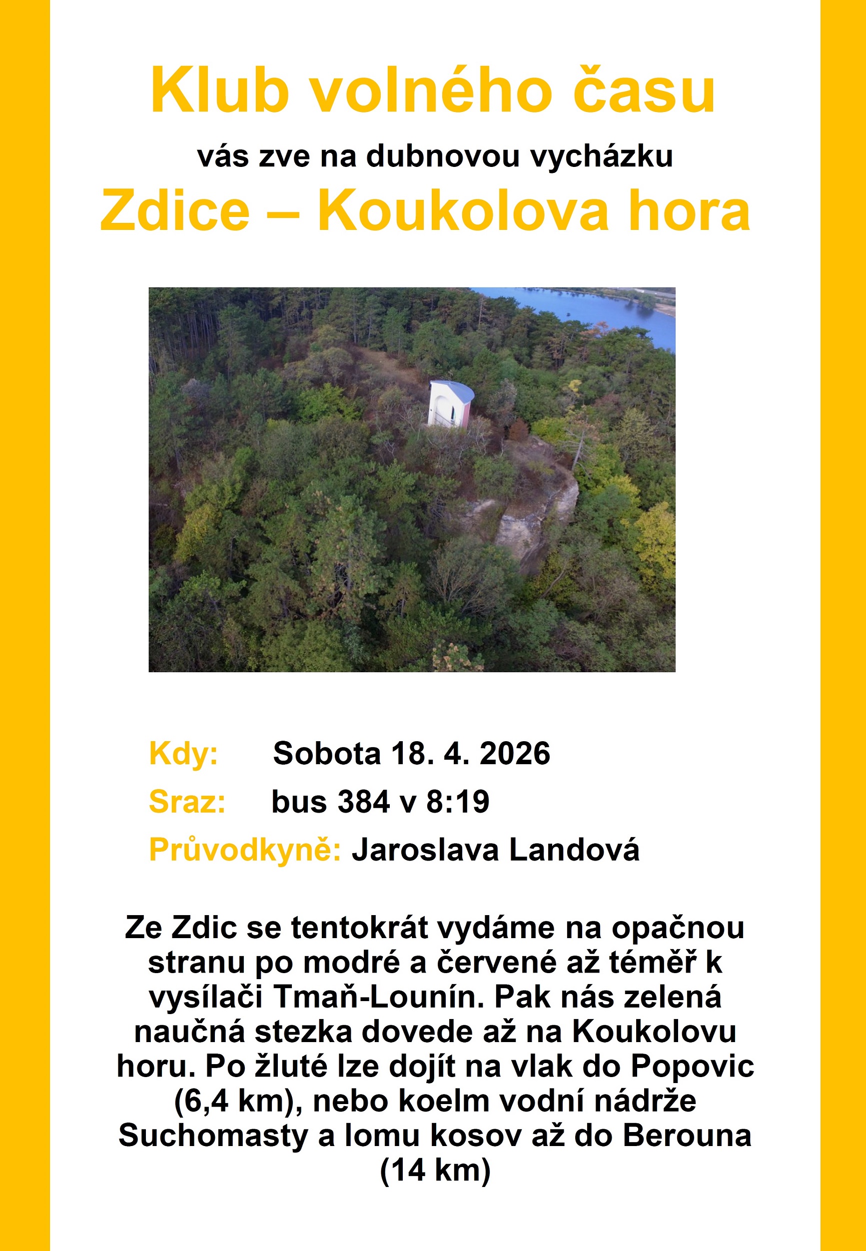 Klub volného času vás zve na dubnovou vycházku: Zdice - Koukolova hora.